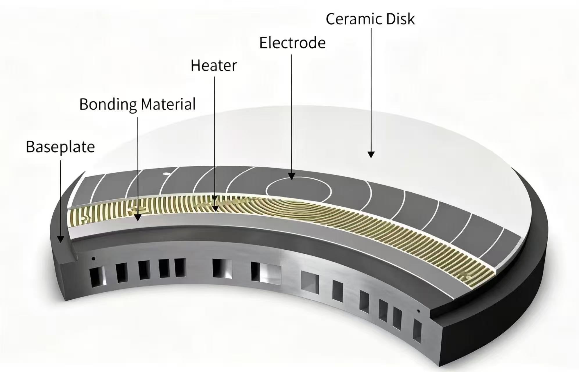 Keramične elektrostatične vpenjalne glaveso natančne komponente, ki uporabljajo elektrostatično polje, ustvarjeno med elektrodami in rezinami, za vpenjanje in pritrjevanje rezin. Široko se uporabljajo na področjih, kot so polprevodniki, ploski zasloni in optika, in so ključne komponente vrhunske opreme, kot so naprave PVD, stroji za jedkanje in ionski implantatorji.