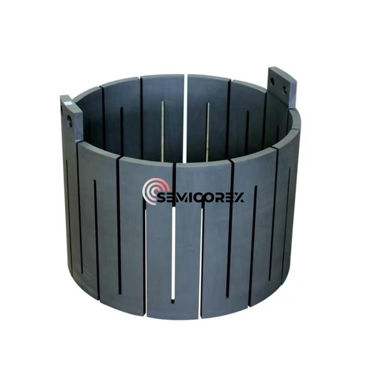 V pečeh za rast silicijevih kristalov Graphite Heater olajša taljenje silicijeve surovine in pomaga vzdrževati enakomerno temperaturo v celotnem procesu kristalizacije. To omogoča tvorbo kristalov silicija visoke čistosti z minimalnimi napakami. Enakomerna porazdelitev temperature preprečuje nastanek temperaturnih gradientov, ki bi sicer lahko povzročili težave, kot je razpokanje kristalov ali rast polikristalnih območij, kar oboje negativno vpliva na delovanje silicijevega materiala v polprevodniških napravah.