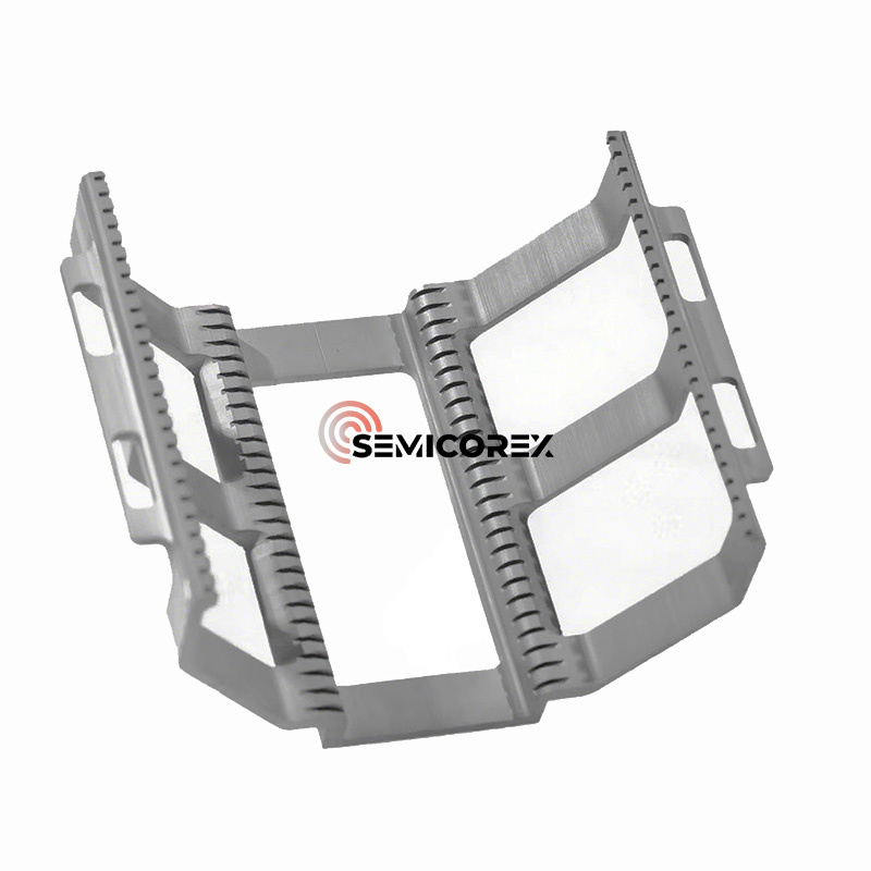 Sic čolni SIC s polkovodilnimi komorami so visoko zasnovan del, ki drži in nosi rezine ali substrate, medtem ko so podvrženi visokotemperaturni toplotni obdelavi v horizontalni komorni peči. Vafer čoln je narejen iz visoke čistosti sic Silicijev karbid (sic), ki zagotavlja edinstveno kombinacijo trdnosti, toplotne stabilnosti in visoke kemične odpornosti, ki jih zahtevajo v polprevodniških, fotovoltaičnih in naprednih keramičnih procesih. Čoln za rezine deluje tudi kot toga struktura, da drži rezine v položaju, dimenzijska stabilnost in natančnost rezin ne bosta izgubljena s podaljšano izpostavljenostjo ekstremnim temperaturam procesa.