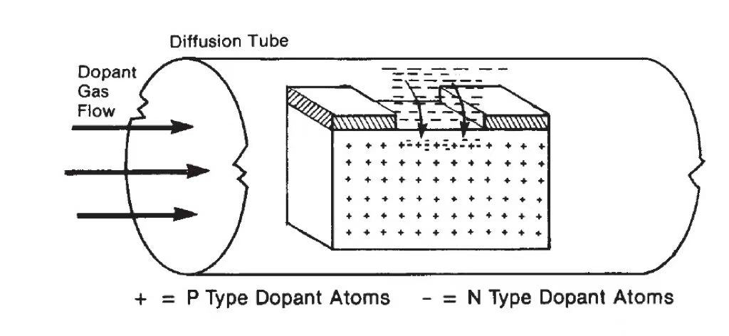 1. Visokotemperaturna difuzija je običajna metoda za dopiranje polprevodnikov. Ideja je obdelava polprevodnika pri visoki temperaturi, kar povzroči difuzijo atomov nečistoč s površine polprevodnika v njegovo notranjost. Ker so atomi nečistoč običajno večji od atomov polprevodnikov, je potrebno toplotno gibanje atomov v kristalni mreži, da tem nečistočam pomaga zasesti intersticijske praznine. S skrbnim nadzorom temperaturnih in časovnih parametrov med postopkom difuzije je mogoče učinkovito nadzorovati porazdelitev nečistoč na podlagi te značilnosti. To metodo je mogoče uporabiti za ustvarjanje globoko dopiranih spojev, kot je struktura z dvojnimi jamicami v tehnologiji CMOS.