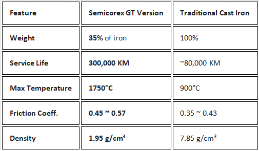 Zmanjšanje mase: Različica GT tehta le 35 % standardne plošče iz litega železa.