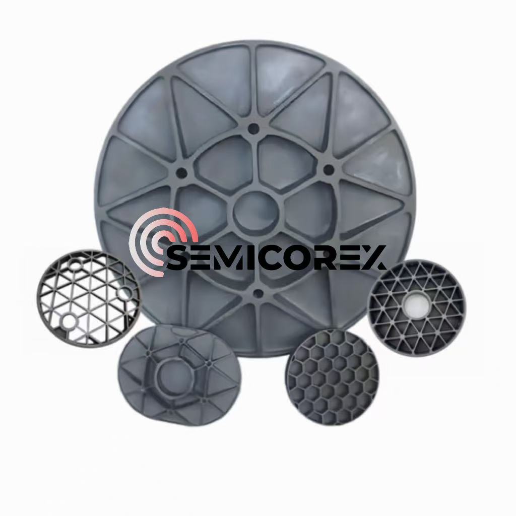 Za izboljšanje priročnosti delovanja in zmanjšanje porabe energije opreme Semicorex uporablja visoko togostsilicijev karbidza izdelavo surovcev ogledal in vključuje zapletene rešetkaste strukture znotraj surovcev za doseganje lahkih zahtev zrcalnih ogledal iz silicijevega karbida. Ta domiselna kombinacija izbire materiala in strukturne zasnove znatno zmanjša težo odsevnih ogledal iz silicijevega karbida, hkrati pa ohranja njihovo togost. Posledično zavzemajo odsevna ogledala iz silicijevega karbida nenadomestljiv prednostni položaj na področjih, kot sta vesoljska in raziskovanje globokega vesolja.