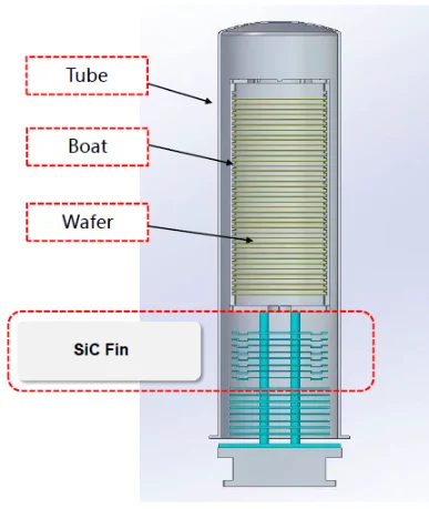 Semicorex trdnarebra iz silicijevega karbidaso običajno nameščeni kot komponente toplotne izolacije v navpičnih pečnih ceveh opreme za termično obdelavo polprevodnikov, kot so peči za žarjenje RTP in difuzijske peči. Rebra iz trdnega silicijevega karbida Semicorex lahko učinkovito uravnavajo porazdelitev temperature v visokotemperaturnih pečeh in zmanjšajo toplotno škodo na procesnih tesnilnih delih vrat, ki jih povzročajo visoke temperature. V delovnih pogojih mokre oksidacije je mogoče uporabiti rebra Semicorex iz trdnega silicijevega karbida za učinkovito preprečevanje negativnih vplivov na rezultate procesa in polprevodniške naprave, ki jih povzroča kondenzacija vodne pare pri relativno nizkih temperaturah procesa.